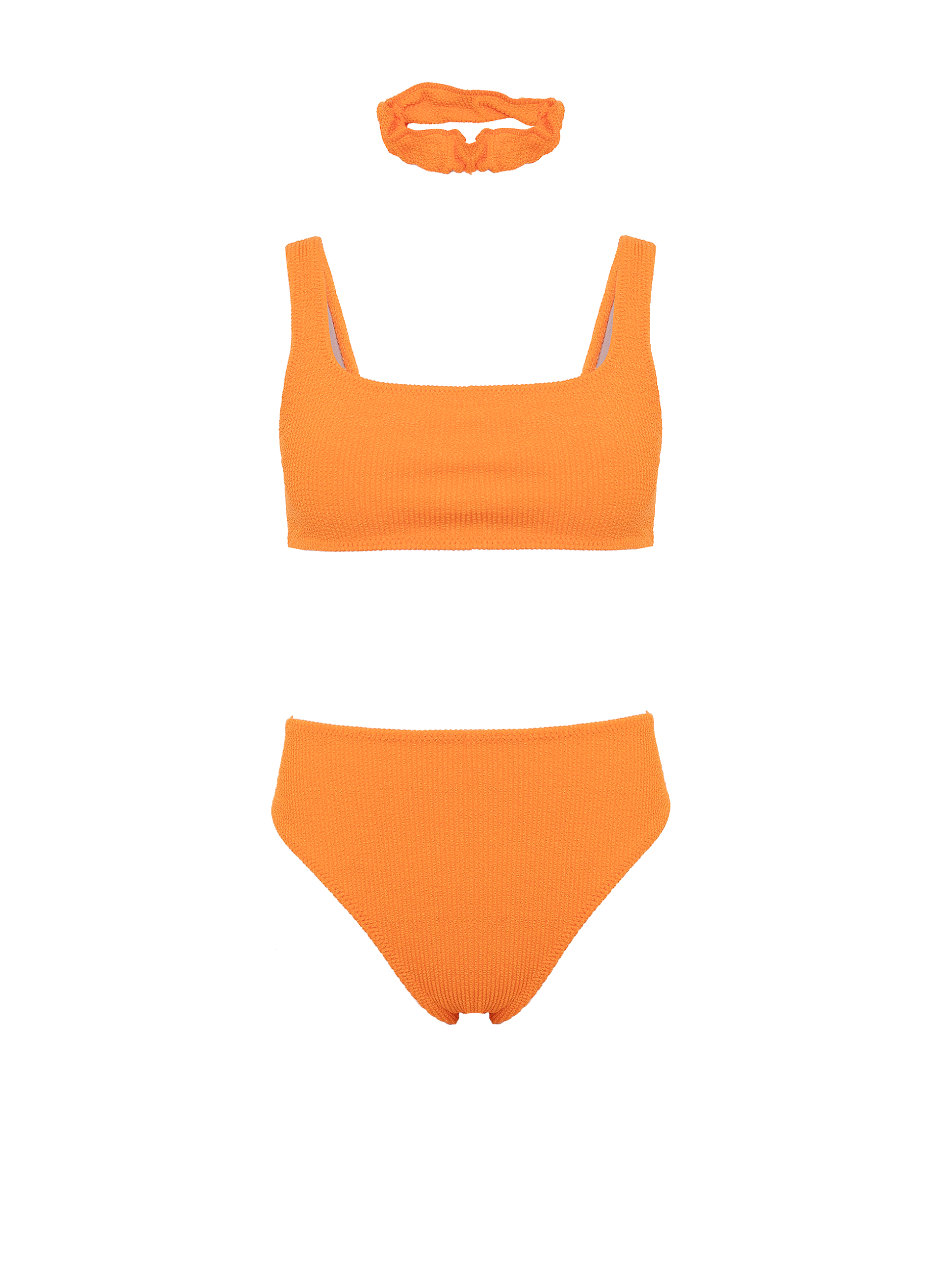 Biquíni Loér. Feito com um tecido texturizado que proporciona um toque luxuoso, este conjunto de duas peças é uma combinação de conforto e estilo. O top reto possui alças largas que garantem sustentação e um decote reto que valoriza a silhueta. Sem fechamento, é fácil de vestir e oferece liberdade de movimento.