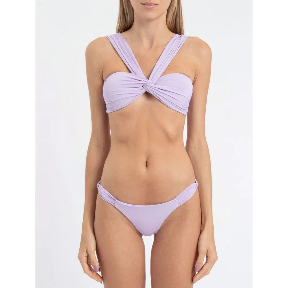 Biquíni Laranjeiras Lilás. O top possui alças largas, bojo e ajuste por amarração na parte de trás. A cacinha possui tmanho médio com detalhe nas laterais.