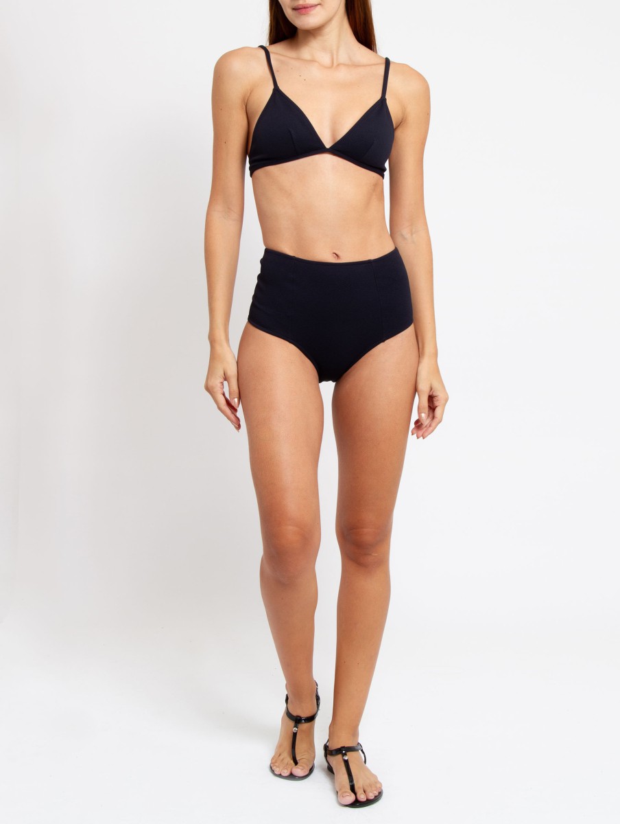 Biquini Puglia, Composto por duas peças confeccionadas em tecido crepone com acabamento texturizado. Top triângulo com alças finas ajustáveis, bojo removível e fechamento posterior com fivela magnética; bottom string com laterais finas e recorte posterior amplo. Calcinha hot pants.