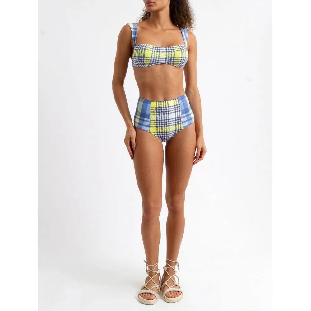Biquíni Nicole Tartan. Conjunto composto por duas peças confeccionadas em tecido elástico. Top com shape justo, decote levemente arredondado, alças amplas, bojo removível e fechamento posterior com fivela de encaixe. Bottom hot pants com recortes frontais e cintura alta.